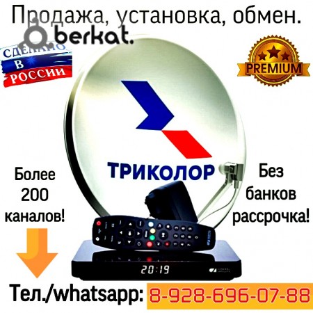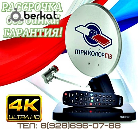 Триколор ТВ ULTRA HD (4K)! Цена комплекта за наличку с ресивером GS B527-В528 7990р. Действует стартовая рассрочка: Первый взнос с доставкой и установкой всего 2490р. Далее в течение двух лет по 400 руб. Доставка, монтаж, подключение ТВ БЕСПЛАТНО!!! Гарантия на 2 года! Также действует акция обмен-(старого приёмника на новый 4К): Обмен за наличку цена 4500р. Обмен в рассрочку первый взнос 1500р. далее со второго месяца по 200р. на 2 года. Также производим установку телевизоров на стену, настройку и монтаж ваших антенн. Тел: 8(988)817-50-66 / 8(928)696-07-88