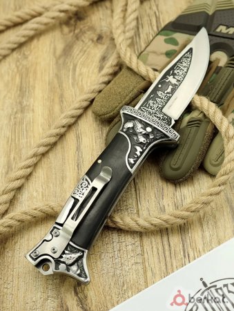 Нож складной охотничий с гравировкой новый