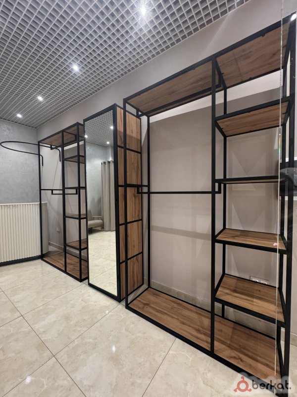 Продаю мебель для магазина, шкафы, стеллажи, ресепшен, за зеркалами есть место для хранения. Так же гардеробные , вместе со шторами. Самовывоз, находится в алиф молле.