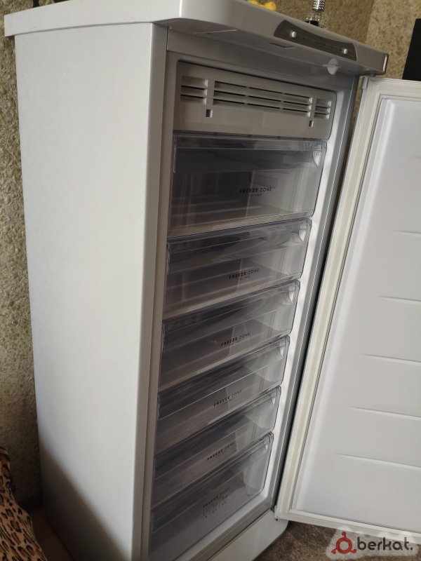 Морозильник которому даже года нет,большее время он стоял отключеным,не давно провёл полную проверку,работает идеально. Есть маленькие вмятины.