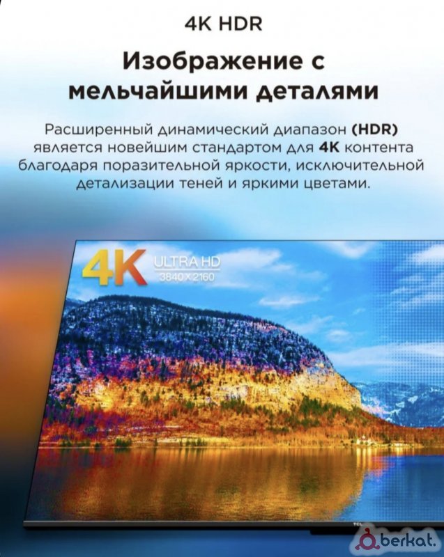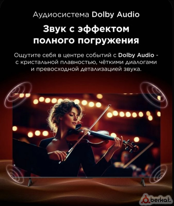 Отличное качество по доступной цене⚡ 2 оперативка 32 память⚡ Большой безрамочный экран 50"дюймов 127 сантиметров по диагонали⚡️ 4K Ultra HD экран очень красивая картинка ⚡ удобная в управлении операционная система⚡голосовой пульт⚡ Wi-Fi, VKвидео RUTUBE. ТВ каналы, бесплатно фильмы, сериалы, мультики⚡20 каналов через антенну(dvb-t2)⚡производство Белоруссия ⚡