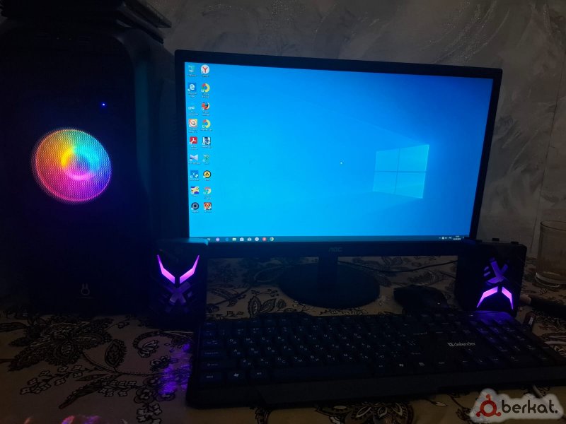Ассаламу Алейкум. Продам компьютер/пк/системный блок. В хорошем состоянии и прекрасной работоспособности. Обслуживался раз в три месяца, что такое пыль и грязь не знает. Полностью обслужен перед продажей, готов служить верой и правдой. Характеристики: 1) Начнем с корпуса-это Aerocool Cylon. Болтики от бокового стекла утеряны. Можно поставить другие, либо докупить за мелочь в компьютерном магазине, а можно вообще не ставить стекло обратно, охлаждение будет даже лучше. Есть подсветка с разными режимами. 2) Блок питания на 500 ватт- модель FSP ATX-500PNR. Для этой системы хватает с запасом. 3) Видеокарта-AMD Radeon RX 580 4gb. Она в отличном состоянии, обслужена, почищена. Температуры под