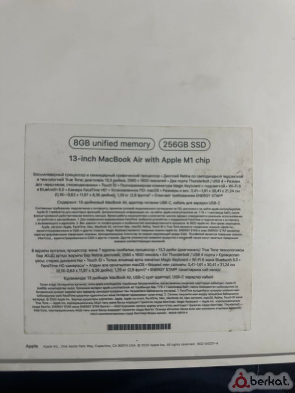 Продаю macbook Air 13 m1, абсолютно новый, полтора месяца назад покупал, 8 циклов заряда. Полный комплект. Окончательно 45 т.