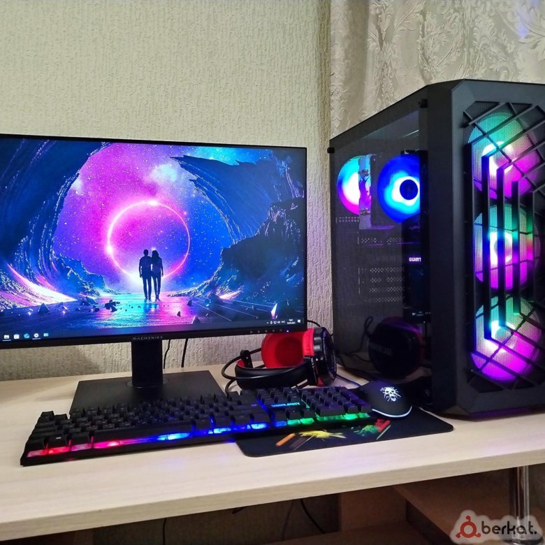 Игровой ПК с монитором (60 Гц). Полный комплект: клавиатура (мембранная, с несколькими режимами RGB подсветки, куплена за 1500), мышка (тоже с RGB подсветкой, куплена за 1500), наушники (игровые, с большими мягкими подушками, микрофон отличный, куплены за 2500), коврик (большой, куплен за 1200+). Сам ПК хороший, включает игровые режимы, такие игры как Forza Horizon 5, GTA 5, Mafia 3, Spider-Man 2, CS 2 и некоторые другие игры тянет хорошо. Очень хороший конплект,продаю срочно!!! В CS2 150-185 fps Пишите!!!!!!