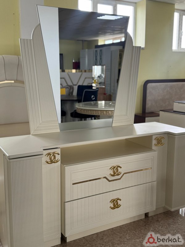 Спальня Фериде *Характеристики* ✔️Производство Ставрополь ✔️Фабрика Арина Хоум ✔️Размеры - Ширина Шкафа 2220мм// - высота 2150мм - глубина 570 мм Кровать - 180/200 Тумба - Ширина 510мм - высота 510мм - глубина 420 мм Трельяж - ш 1512 мм - в 800 мм - Глубина 2032мм Пуфик - ш 450мм - в. 800мм ✔️Пуфик в комплекте? ✔️Фурнитура Турция *Цена за наличный расчет: 98.500 *Бесплатная доставка по Ингушетии ?✅*