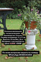 Колонна маленькая «классическая» Производство: Польша Размер основания: 17 х 17 см Высота: 33 см Вес: 14 кг Материал: элитный бетон Номер для связи 8938 434 34 04
