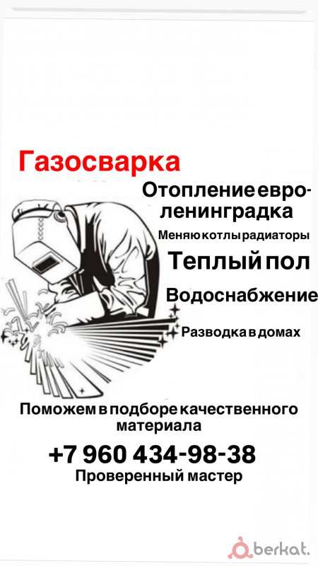 Предлагаю услуги газосварочных работ ❗ Делаем евро отопления и Ленинградские отопления! Установка навесных и напольных котлов! Делаем качественно и надёжно Опыт работы больше 10лет ❗❗ Гарантируем !!!!! Кто сомневается прошу лишний раз не беспокоить. Работаем на совесть ❗❗❗